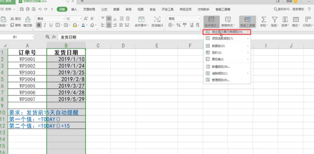 以上就是wps2019制作订单发货提醒的教程,希望大家喜欢,请继续关注脚本之家。