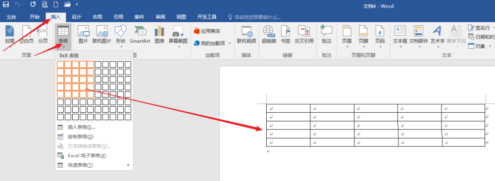 2、点击【插入】—【表格】,插入一个表格。