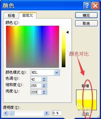 5、在颜色对话框中选择“自定义”,将“颜色模式”设置为“HSL”。