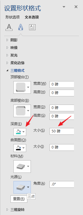 6、在右侧打开的设置窗口中,点击【三维格式】,在【深度】中选择一种颜色,并设置深度大小。