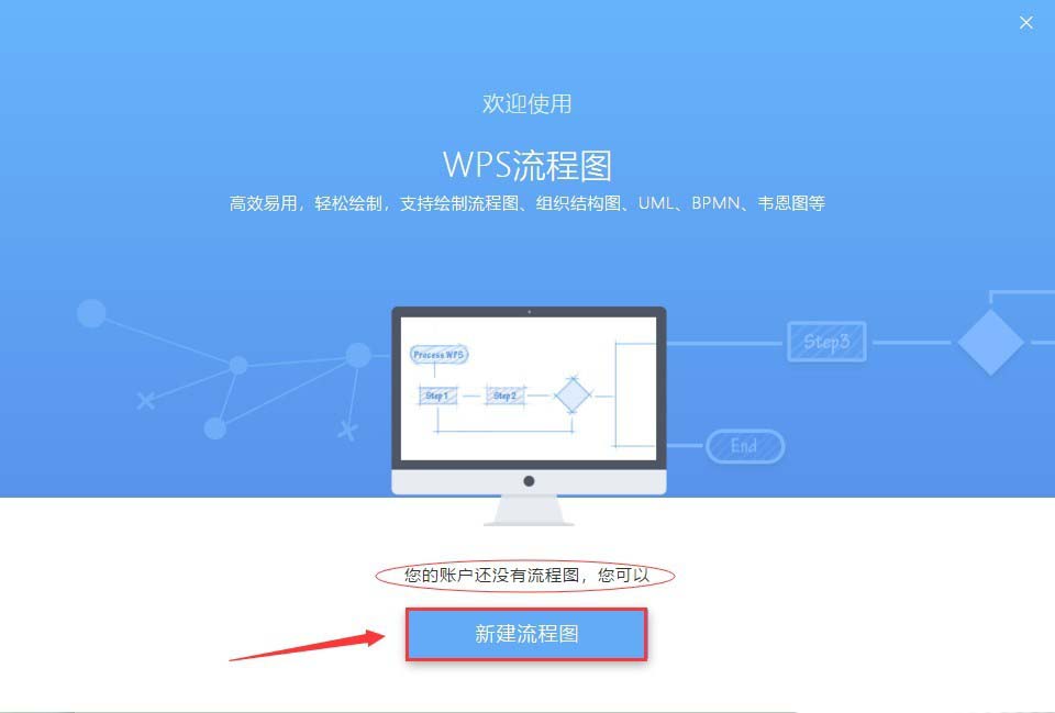 1、当您的账户没有流程图时,新建流程图的方法有:在文档菜单栏选择“插入”→“流程图”,在弹出的对话框点击“新建”打开“新建流程图”界面(如图3所示)