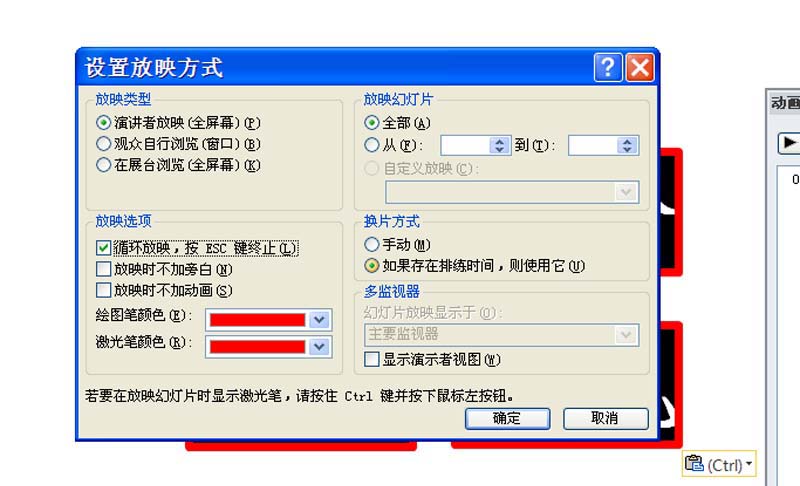 6、选择第一个矩形动画将其复制到其他矩形上,复制幻灯片,设置幻灯片放映为循环播放。