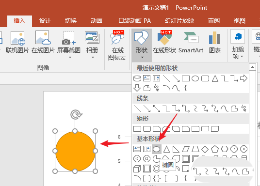 4、插入一个圆形。
