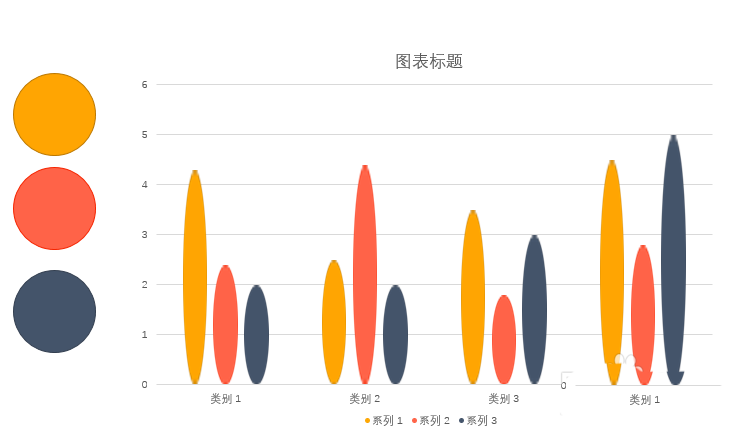 5、复制圆形,点击柱形,执行粘贴,则柱形就变成了变形的圆形。对所有柱子执行相同操作,并使用颜色区别。