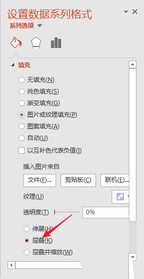 7、在右侧打开的设置窗口中,点击【层叠】。