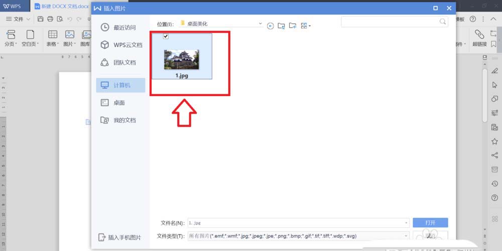 2、插入一张图片。点击插入——图片,插入一张图片。