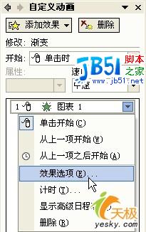 单击“确定”后,再单击“自定义动画”列表中的“渐变 图表1”的下拉箭头,在下拉菜单中选择“效果选项”命令,如图3。