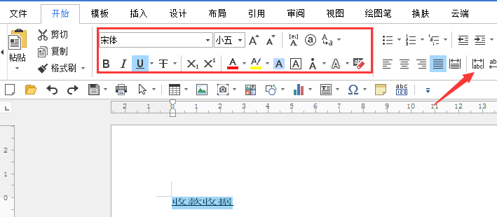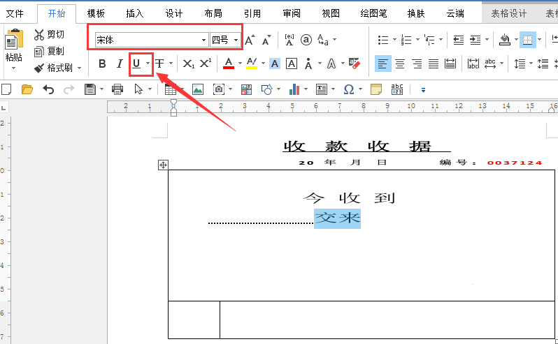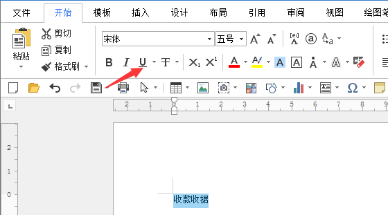 2、在文档中选输入收款收据,选中字体点【下划线】符号。