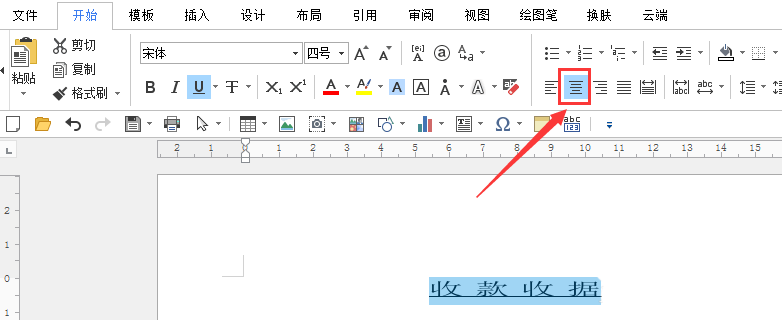 2、在文档中选输入收款收据,选中字体点【下划线】符号,之后对字体进行加粗、拉宽、加大字号、让字体居中等;
