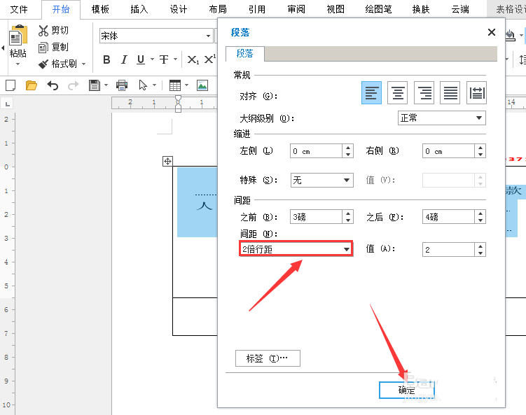 11、按格式输完内容后,全选表格中的内容按鼠标右键,在下拉列表中【段落】,将段落对话框内容设置好后点确定。