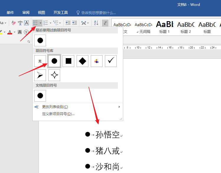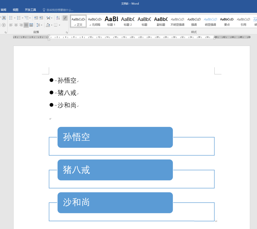 2、在文档中插入列表文字,得到普通的文字列表效果。