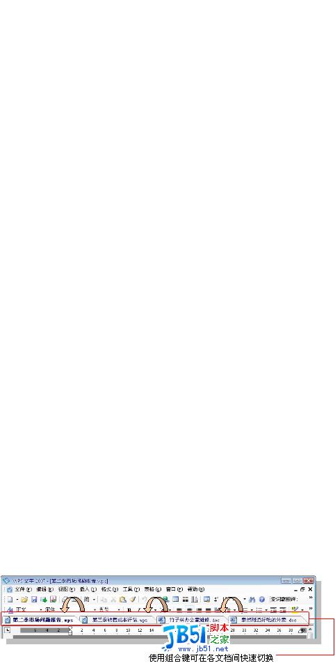 我比较喜欢WPS文字标签式文件打开方式:在一个WPS文字程序里可以打开若干个文档,让任务栏看上去干净许多,也避免了窗口过多造成的窗口层叠。但在各文档间进行切换时,移动鼠标来回点击就显得有些浪费时间,而且有时不小心连续点两下,还会把文档给关掉。这时,快速切换功能就很管用了。