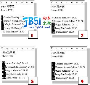 按下Alt键不放,将光标移到名单第一行的名次前,也就是乔丹的名次“1”前,从“1”开始向下选择,一直选到“99”,放开Alt键,然后点鼠标右键,选择“剪切”命令,名次就被删掉了,如下图所示。(直接用BankSpace键只能删掉“99”一个数字)。至于琼斯的名次“100”,我试过一起选它,但这样会造成名次为单位数的球员姓名第一个字母也被选中,所以单独选中它删掉就行。