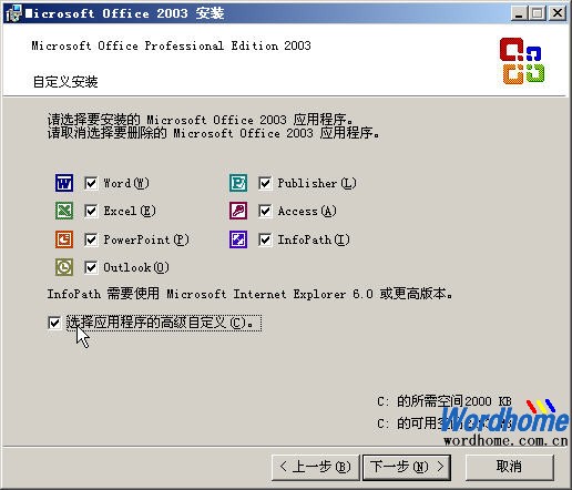 图2008061108 选中“选择应用程序的高级自定义”复选框