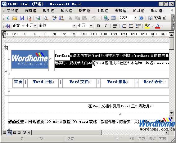 第2步,Word2003开始连接Web服务器,用户可以在Word窗口中看到目标网页内容,并且可以进行复制、删除和保存等编辑操作,如图2007112305所示。