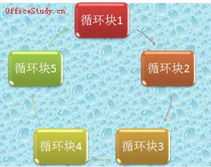 这里以插入一个循环结构的图形来说明SmartArt的基本用法。选择循环结构中的块循环,单击“确定”,在左边的框中可输入文字,输入的内容立刻就可以显示在图表之中,字体等等格式是按照预先模板的格式显示的,可选中文字后单击右键就可调整文字的格式,也可单独对各个区块用鼠标调整。