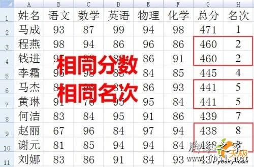 在用Excel统计成绩时,我们一般会根据成绩高低进行排序,然后按序列自动填充出名次。这种方法得出的名次与总分没有关联,即使成绩相同,也会填充出不同的名次。