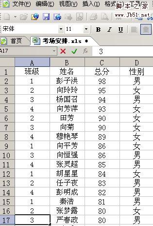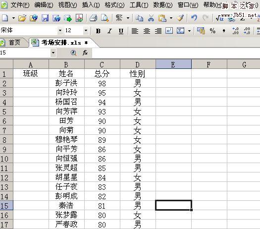 第一步:输入好学生的相关信息,并按成绩排列好顺序。如图。