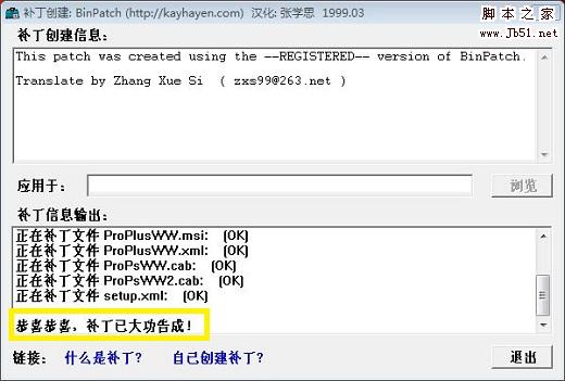 Step2 - 将下载好的补丁.rar解压并将里面的chage.cmd和YourPatch.exe一并复制到Step1中的解压文件夹setup(这里举例为D:\setup )下,运行change.cmd,请耐心等待直至出现下面画面: