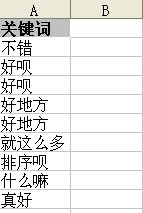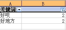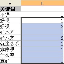 3、拖动2中的公式应用到下面剩余的单元格中,重复出现的词旁边单元格的值变为2,否则就是1: