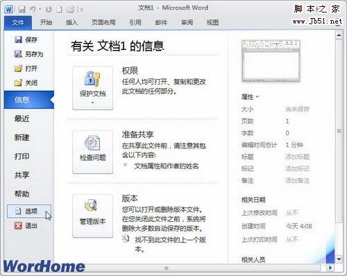 第1步,打开Word2010文档窗口,依次单击“文件”→“选项”命令,如图2009121301所示。