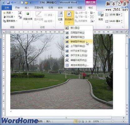 Word2010“自动换行”菜单中每种文字环绕方式的含义如下所述: