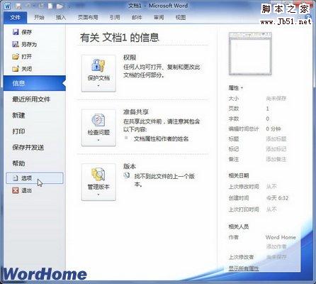 第1步,打开Word2010文档窗口,依次单击“文件”“选项”菜单命令,如图2010072201所示。