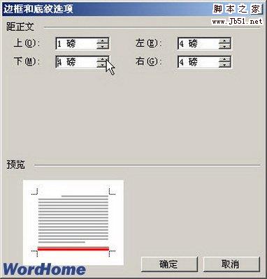 小提示:在“边框”选项卡中单击“选项”按钮,打开“边框和底纹选项”对话框,用户可以设置段落边框的位置,完成设置单击“确定”按钮,如图2010072208所示。