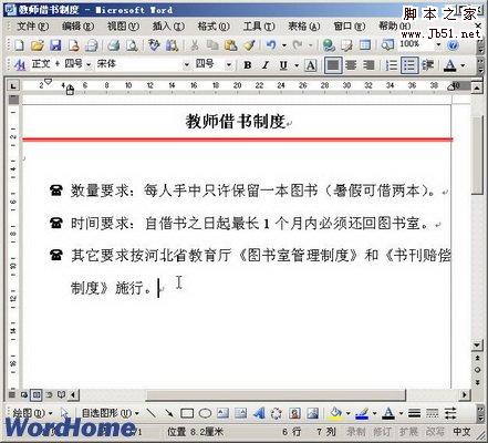 在使用Word2003编辑文档的过程中,有时需要为段落设置边框。例如当需要在文档标题和正文之间添加一条分割线时,则可以借助段落边框功能实现这个目的,操作步骤如下所述: