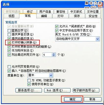 第一步:找任意一个未损坏的文件打开word,在工具-选项-常规中,选中“打开时确认转换”
