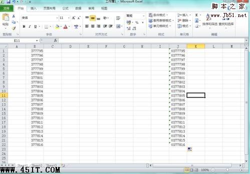 好多人在运用Excel是显示数字的第一个数字为0是总是显示不出来,比如下图的B列,而J列则可以