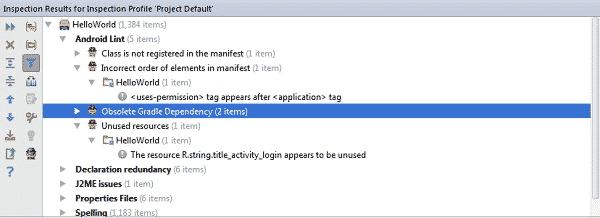 要运行Lint工具,大家首先需要在Android Studio的“Analyze”菜单中选择“Inspect Code…”。当Android Studio完成了对项目的检测之后,它会在窗口底部显示出分析结果。请注意,除了Android Lint之外,Android Studio还提供一系列其它检查功能。只需双击某个已经发现的问题,系统就会帮助大家定位到对应文件中存在问题的位置。