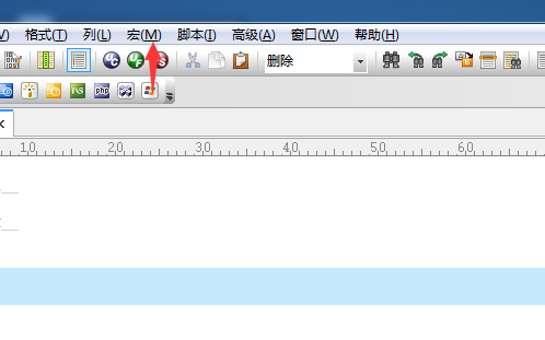 2、在编辑的进行选中运行宏的位置之后,进行点击菜单中的宏的选项。