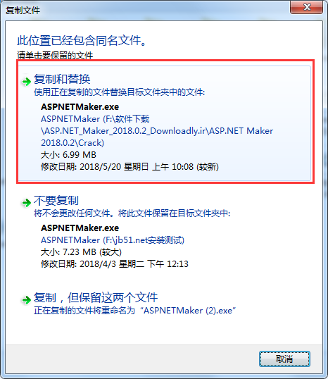 2、找到解压后的Crack文件夹,复制“ASPNETMaker.exe”到程序文件夹