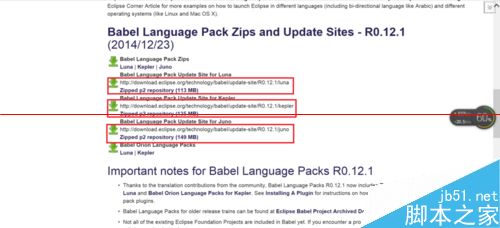 第二步:进入官网下载eclipse的语言包,步骤如图,然后解压,这里语言包以Luna为例。