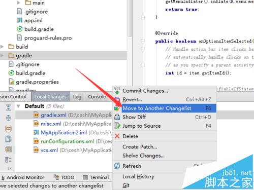 4、进行右键已选中的文件,弹出的下拉的菜单中进行点击“Move to another changelist”的选项。