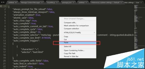 2、复制配置内容到用户自定义配置,点击菜单“Preferenc”->“Settings - User”, 将复制的内容黏贴至用户自定义配置文件中,然后保存用户自定义配置