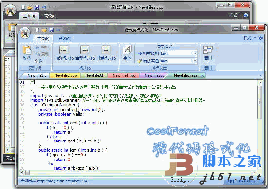 一.软件介绍 CoolFormat源代码格式化是一款C\C++\C#\CSS\HTML\Java\JavaScript\JSON\Objective-C\PHP\SQL\XML代码格式化工具。软件可以快速多种风格格式化,并对语言进行着色。界面采用Office 2010风格,并有多种样式可以替换。并且支持代码高亮到网页上显示,方便博客文章之类的撰写阅读。