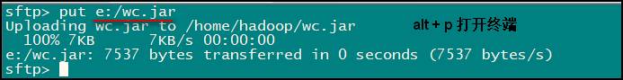 LZ使用的方法是:在 SecureCRT 客户端中使用 Alt + p 快捷键打开上传文件的终端,输入 put e"\wc.jar 即可上传