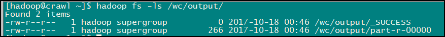 [hadoop@crawl ~]$ hadoop fs -mkdir /wc