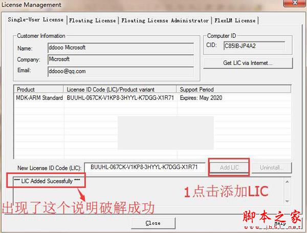 9、点击“AddLIC”出现如下界面说明破解完成。