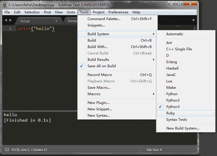 Sublime Text 3 Python开发环境配置