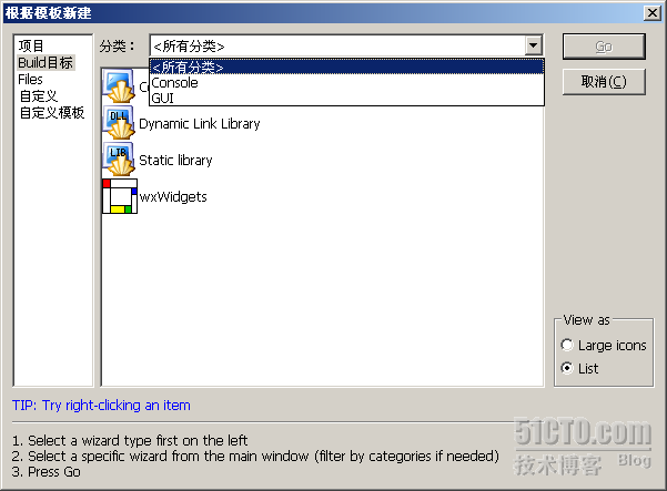 Code Blocks是分好多平台,在此配置下Windows XP平台下的环境,使用的编译器工具为MinGW。