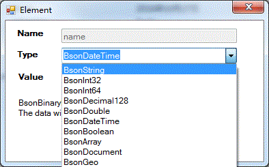 BsonMaxKey Sharding用最大值BsonMinKey Sharding用最小值BsonBinary Base64的数据 注意:请直接填写内容即可,系统自动进行转换