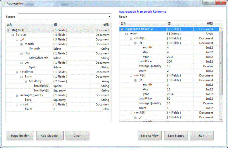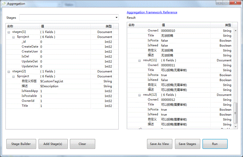 你可以使用软件提供的StageBuilder来添加聚合管道条件。