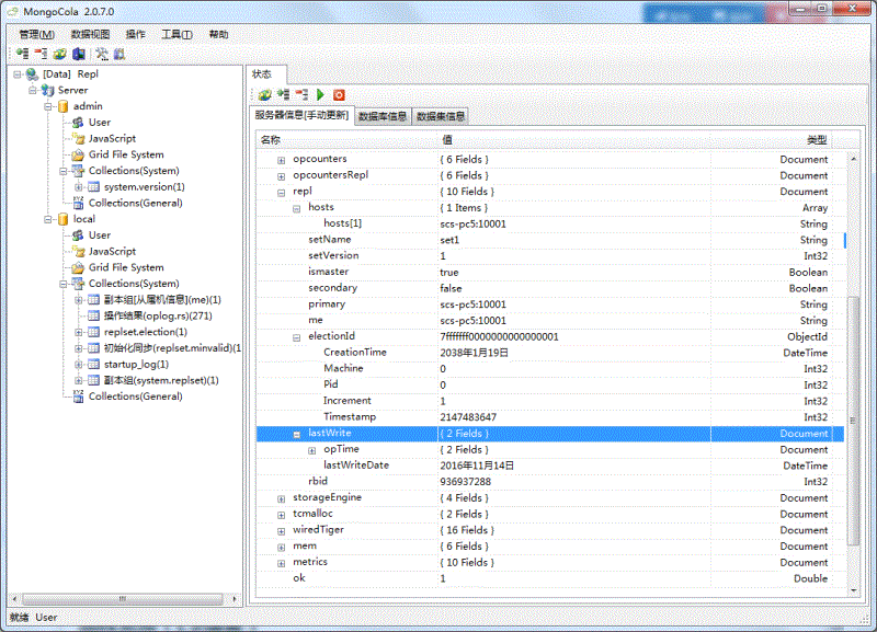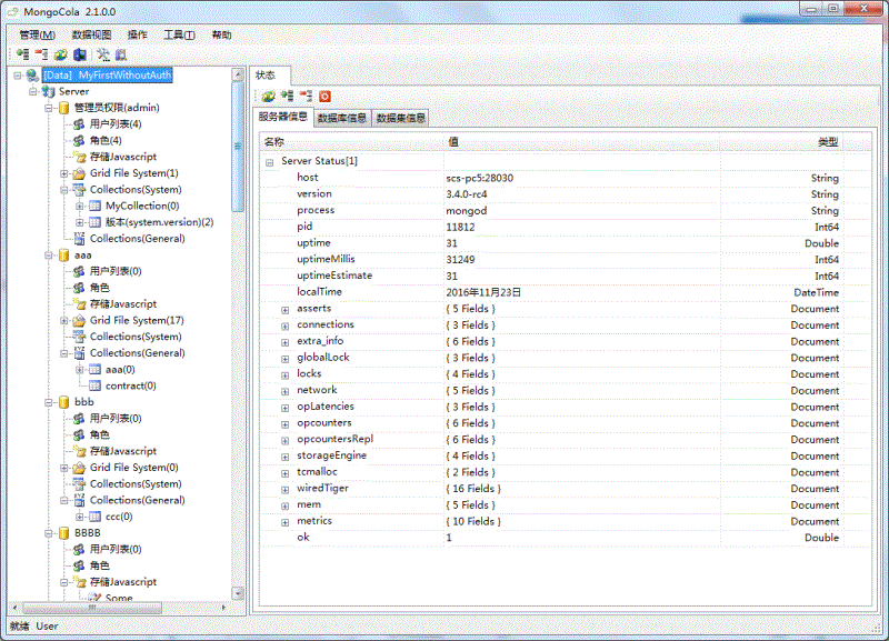 MongoCola是一款帮助你在图形界面下查看,操作MongoDB的工具类软件。