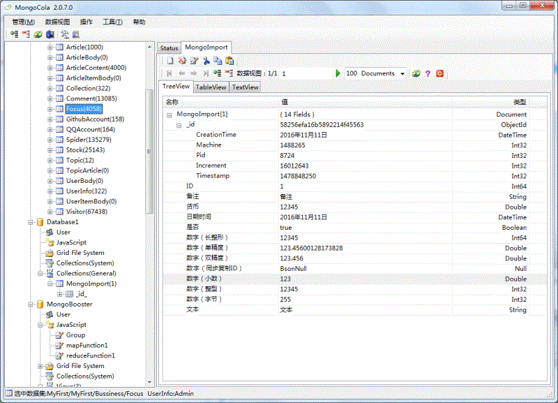 MongoDB的数据: