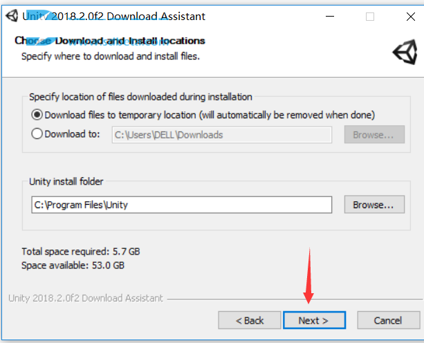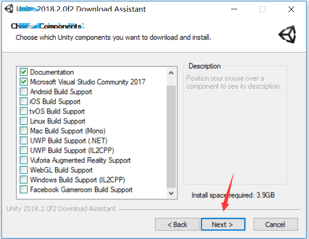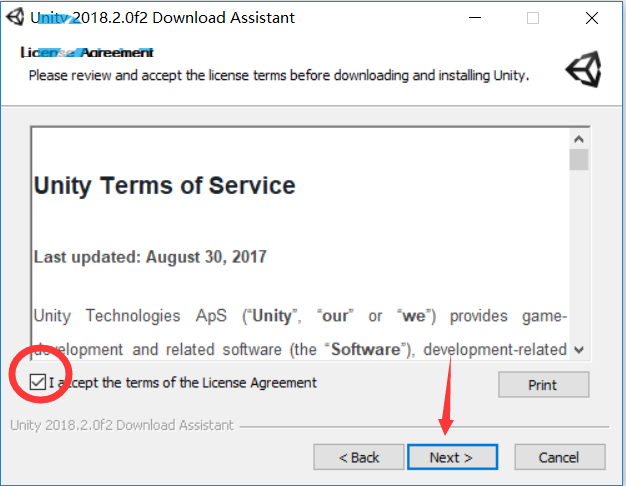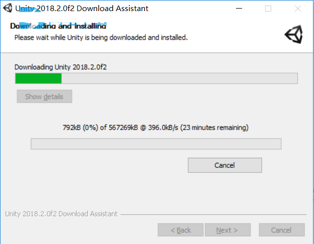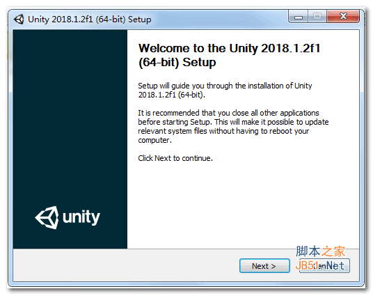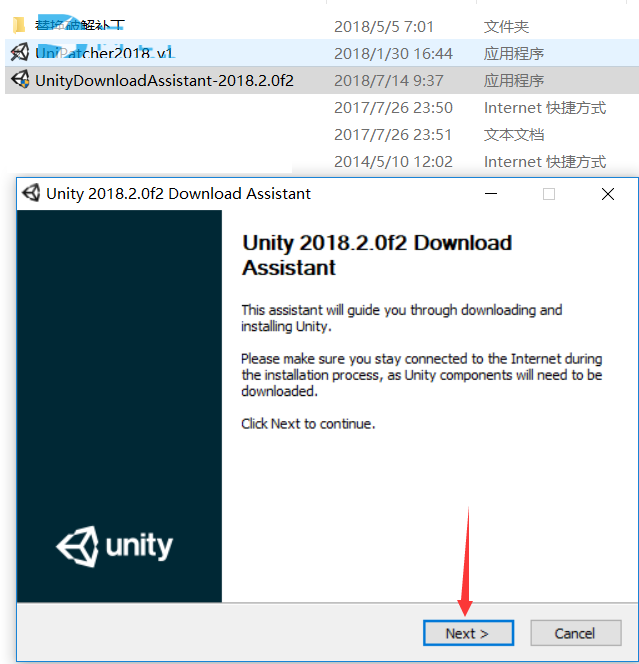 2.首先安装原版,双击UnityDownloadAssistant-2018.2.0f2.exe运行,点next继续