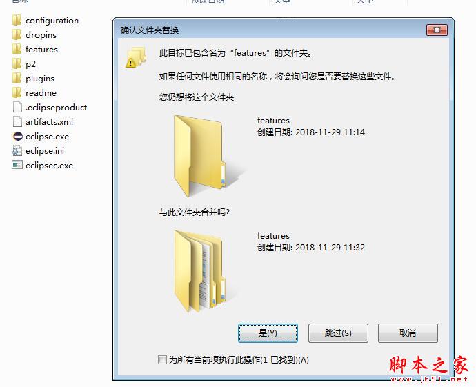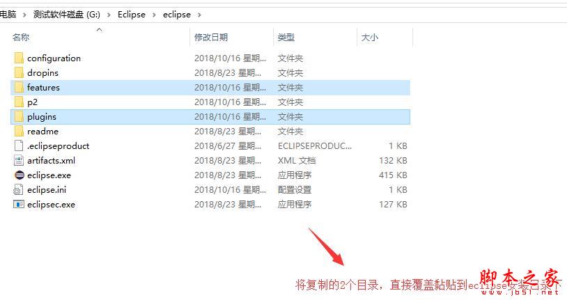 1、下载离线汉化包,先关闭eclipse运行程序,将汉化包的features和plugins目录复制黏贴覆盖到eclipse安装目录里: