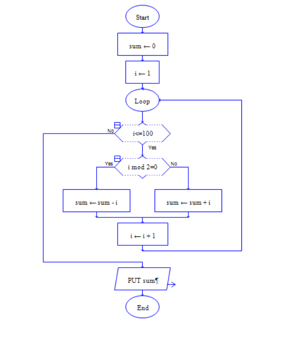 1-2+3-4+...-100这看起来是个很简单的计算,算法也有很多种。今天我们就来看看Raptor编程计算的方法。
